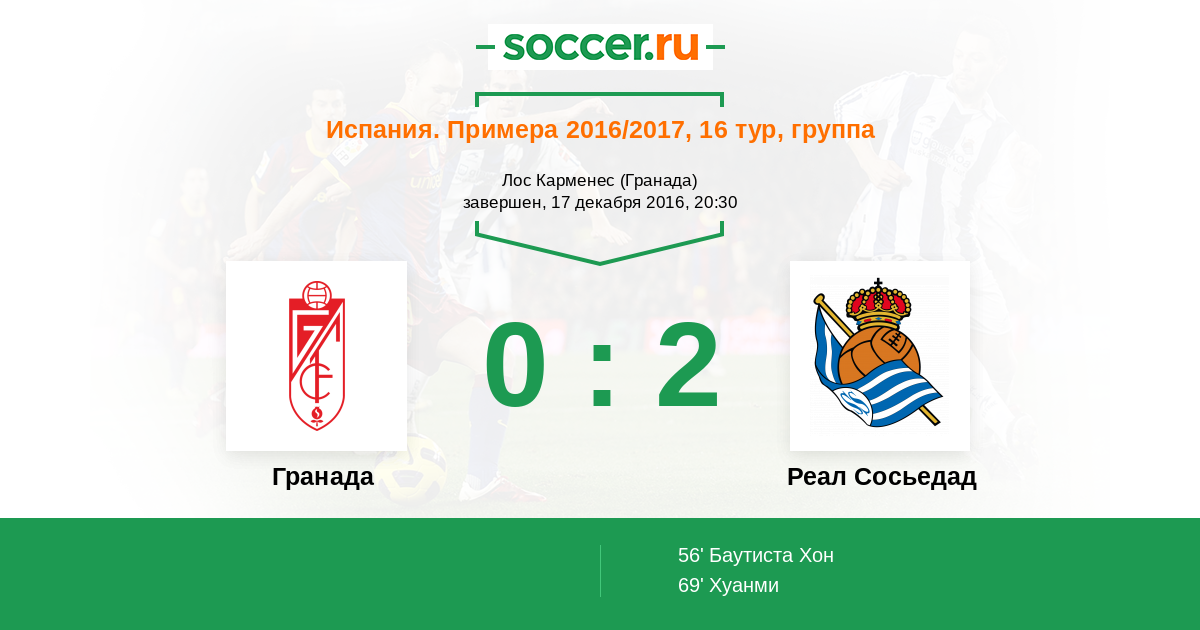 Протокол матча Гранада против Реал Сосьедад