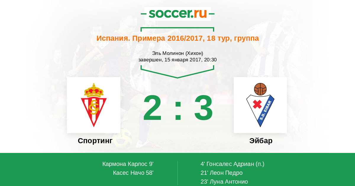 Протокол матча Спортинг против Эйбар