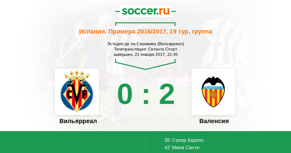 Протокол матча Вильярреал против Валенсия