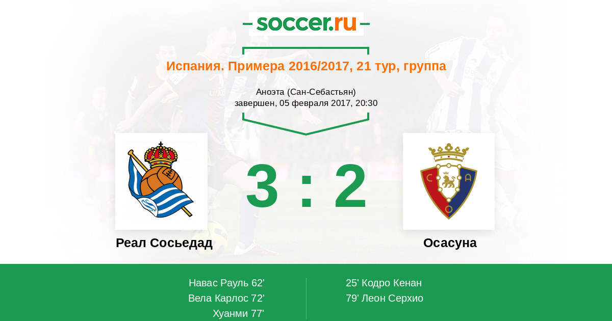 72' (2:1) Вела Карлос (11) (Ойарсабаль Микель (18))