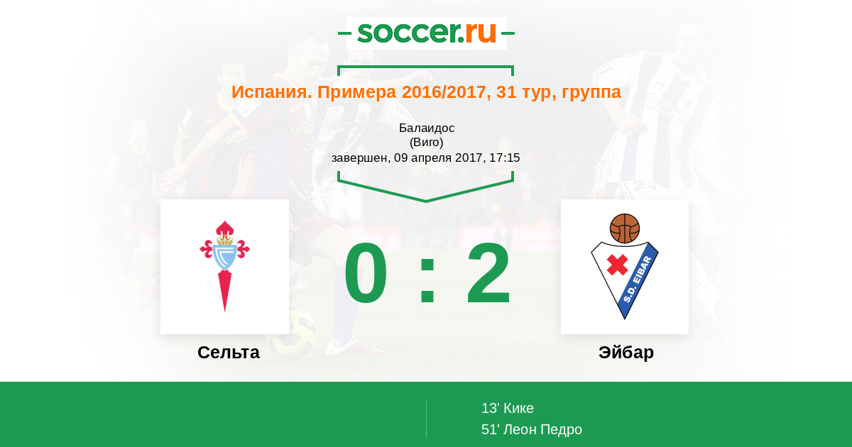13' (0:1) Кике (17) (Энрих Серхио (9))