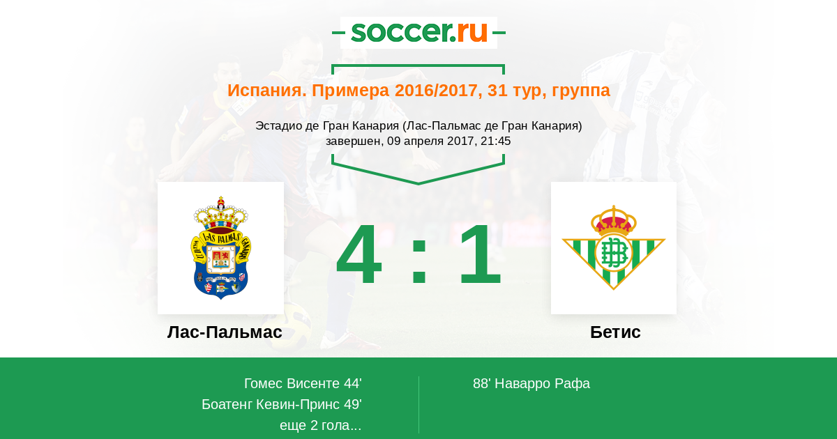 Протокол матча Лас-Пальмас против Бетис