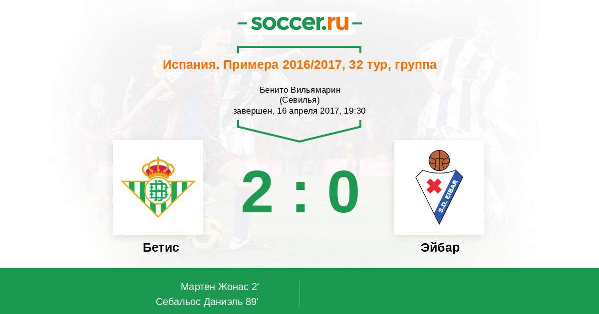 Протокол матча Бетис против Эйбар