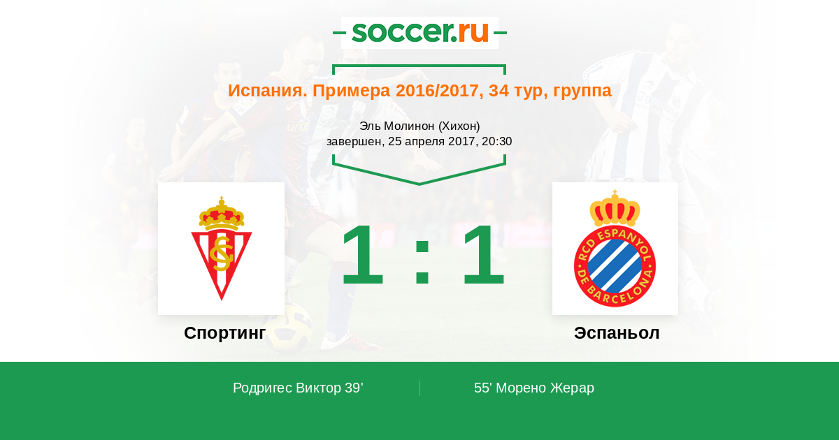 Протокол матча Спортинг против Эспаньол