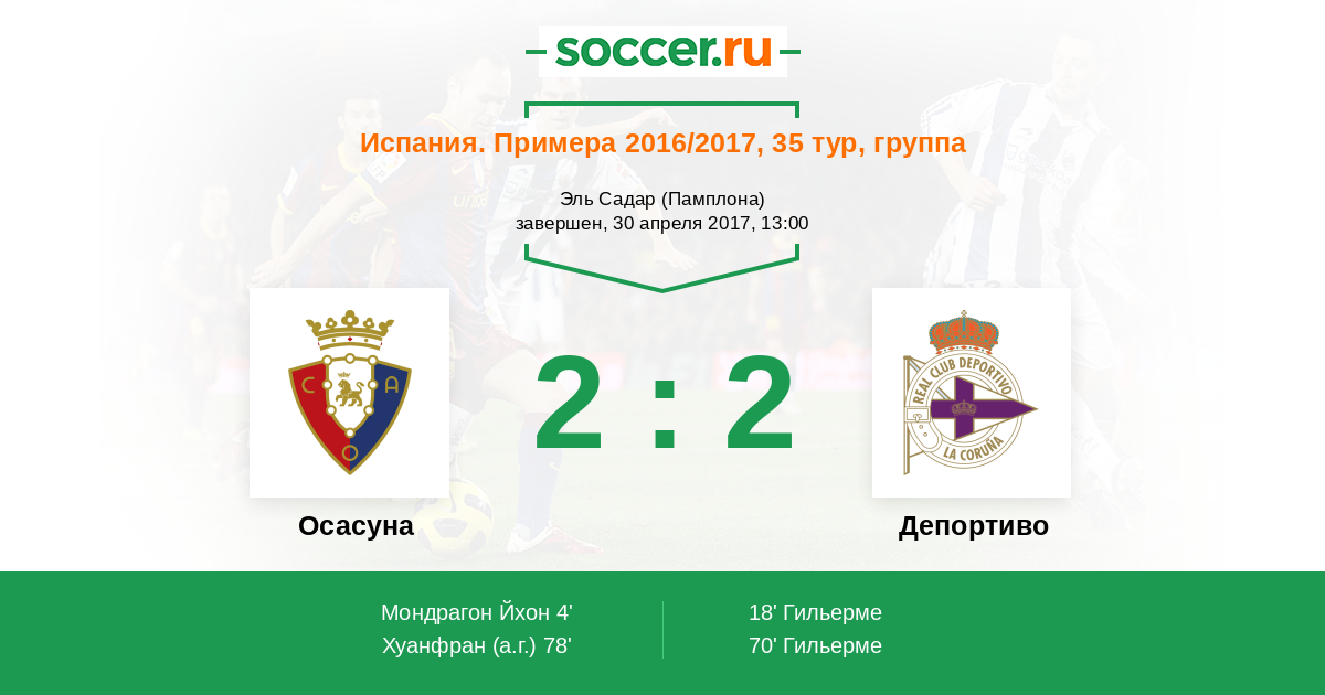 18' (1:1) Гильерме (20) (Хуанфран (2))