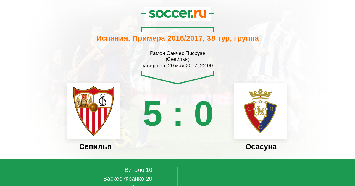 20' (2:0) Васкес Франко (22) (Эскудеро Серхио (18))