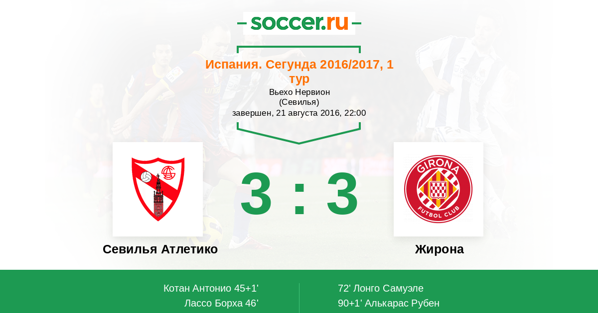 Протокол матча Севилья Атлетико против Жирона
