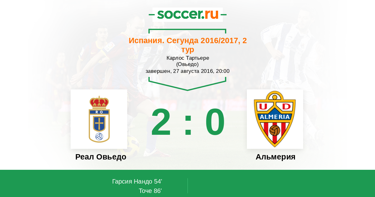 Протокол матча Реал Овьедо против Альмерия