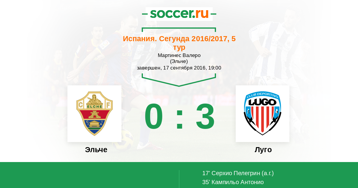 Протокол матча Эльче против Луго