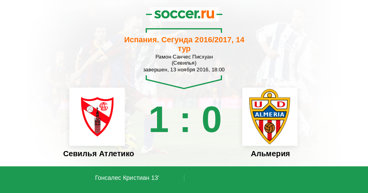 Протокол матча Севилья Атлетико против Альмерия
