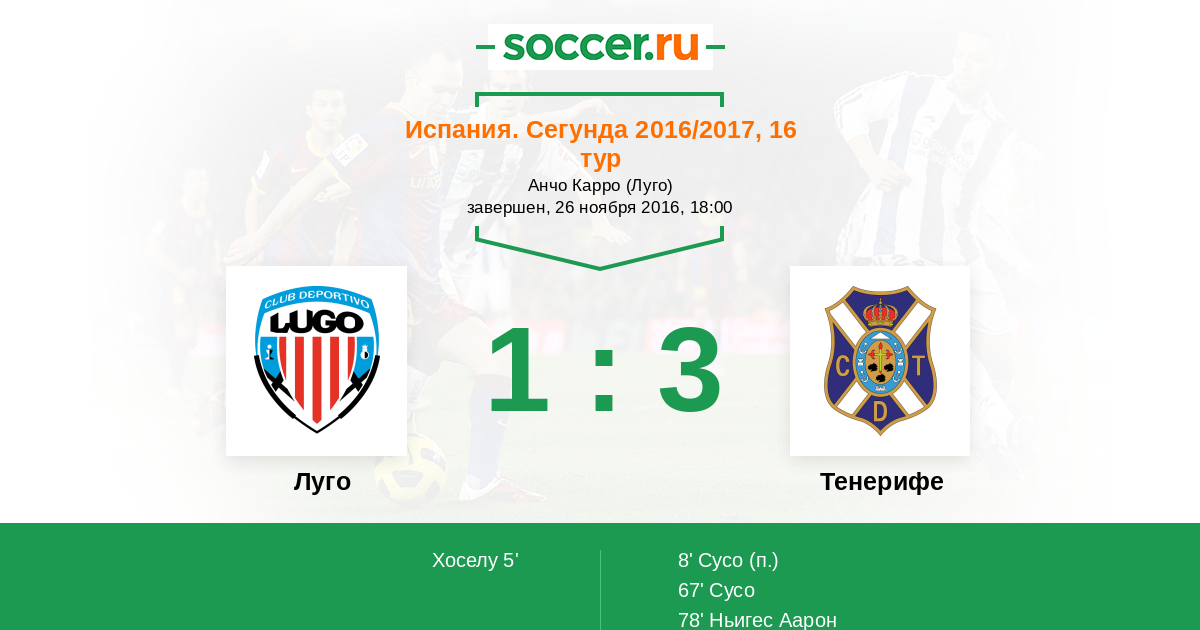 Протокол матча Луго против Тенерифе