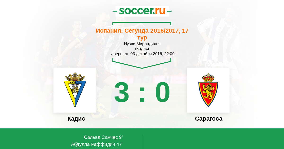 Протокол матча Кадис против Сарагоса