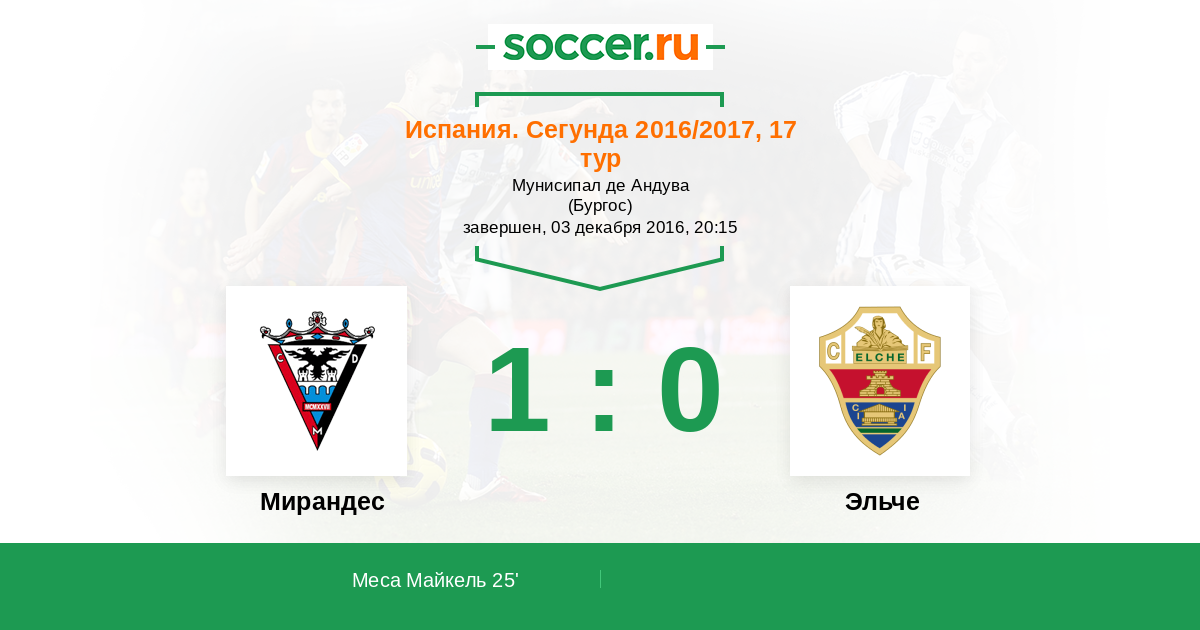 Протокол матча Мирандес против Эльче