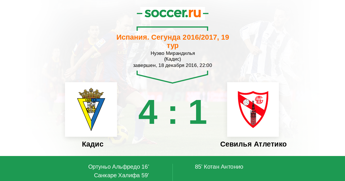 Протокол матча Кадис против Севилья Атлетико