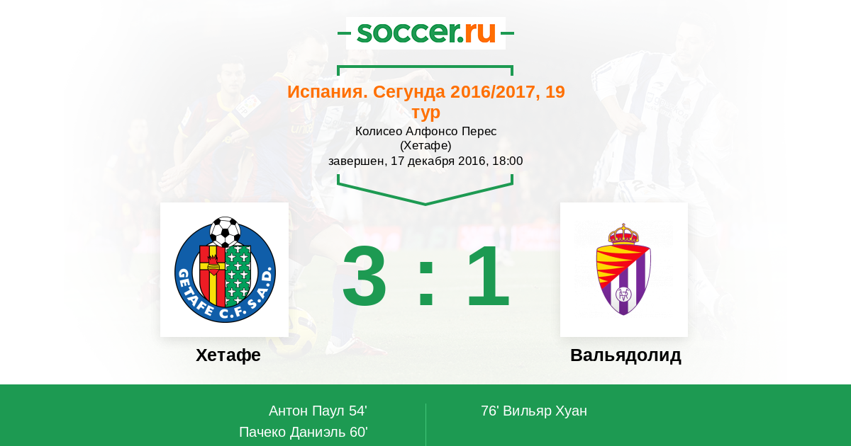 Протокол матча Хетафе против Вальядолид