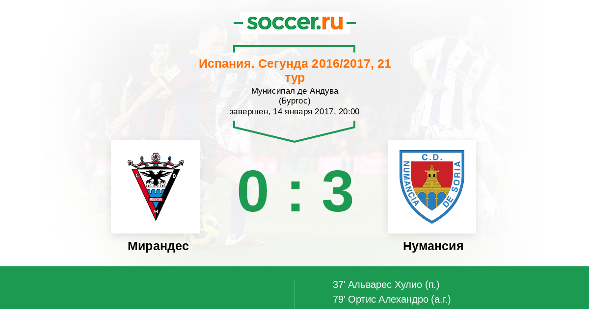 Протокол матча Мирандес против Нумансия