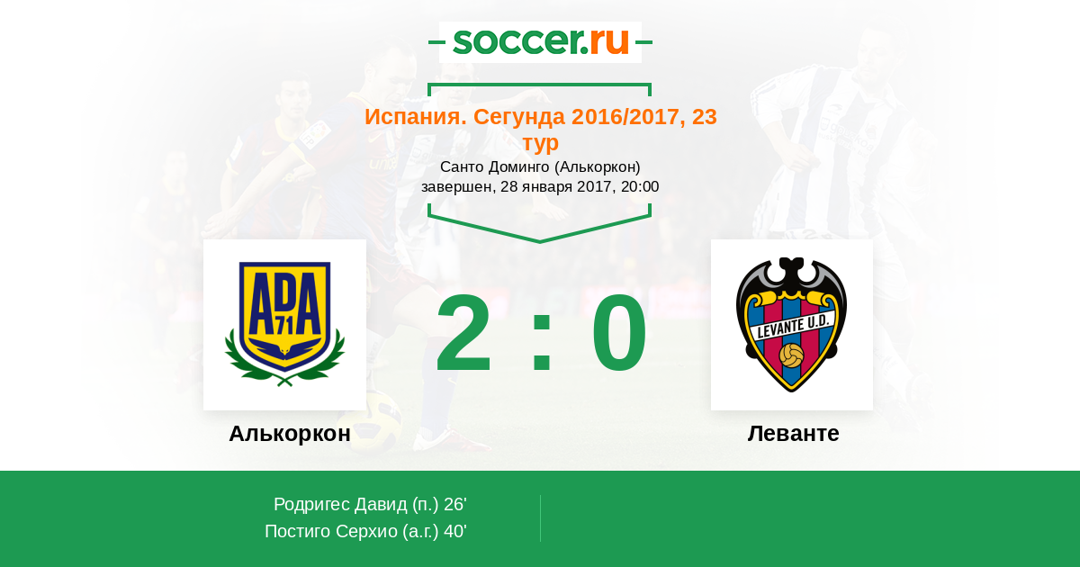 Протокол матча Алькоркон против Леванте
