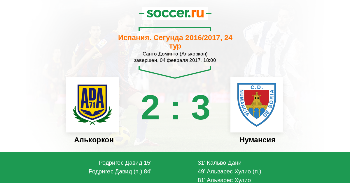 Протокол матча Алькоркон против Нумансия
