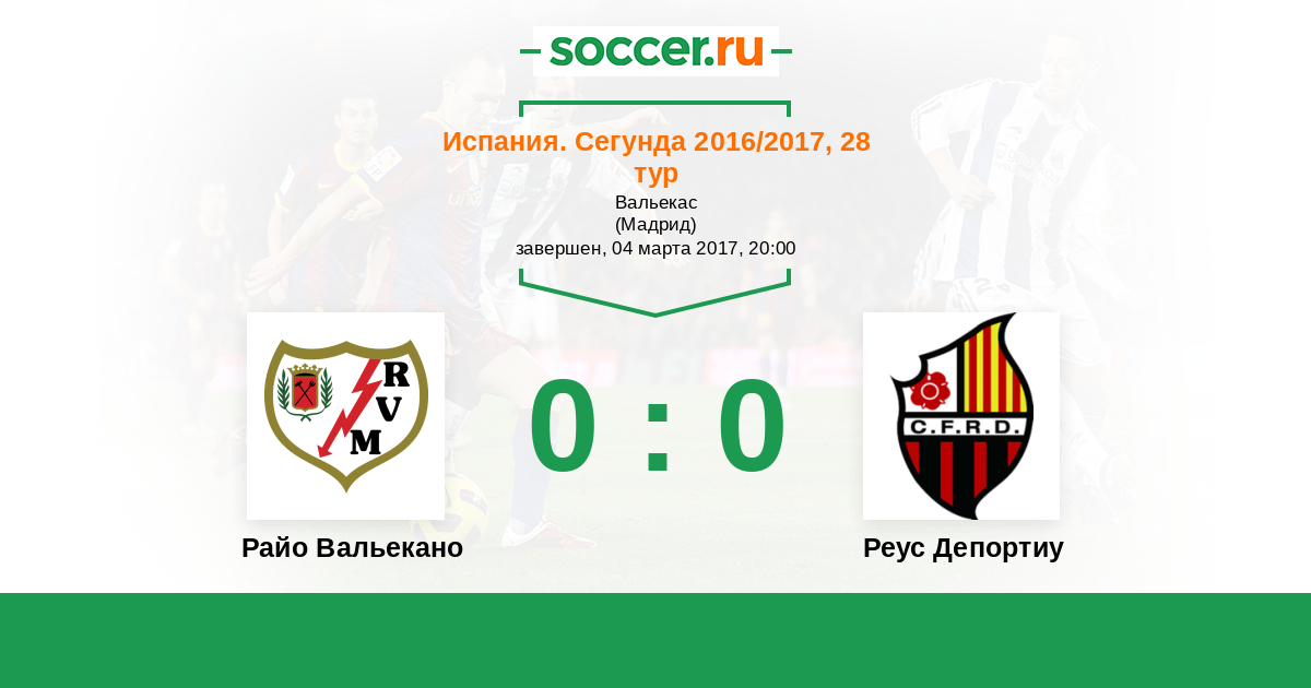 Протокол матча Райо Вальекано против Реус Депортиу