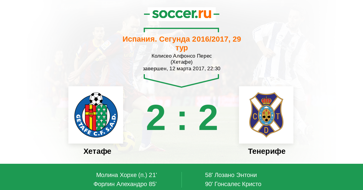 Протокол матча Хетафе против Тенерифе
