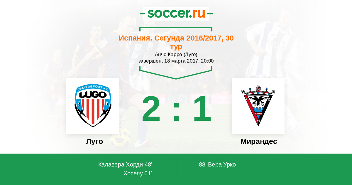 Протокол матча Луго против Мирандес