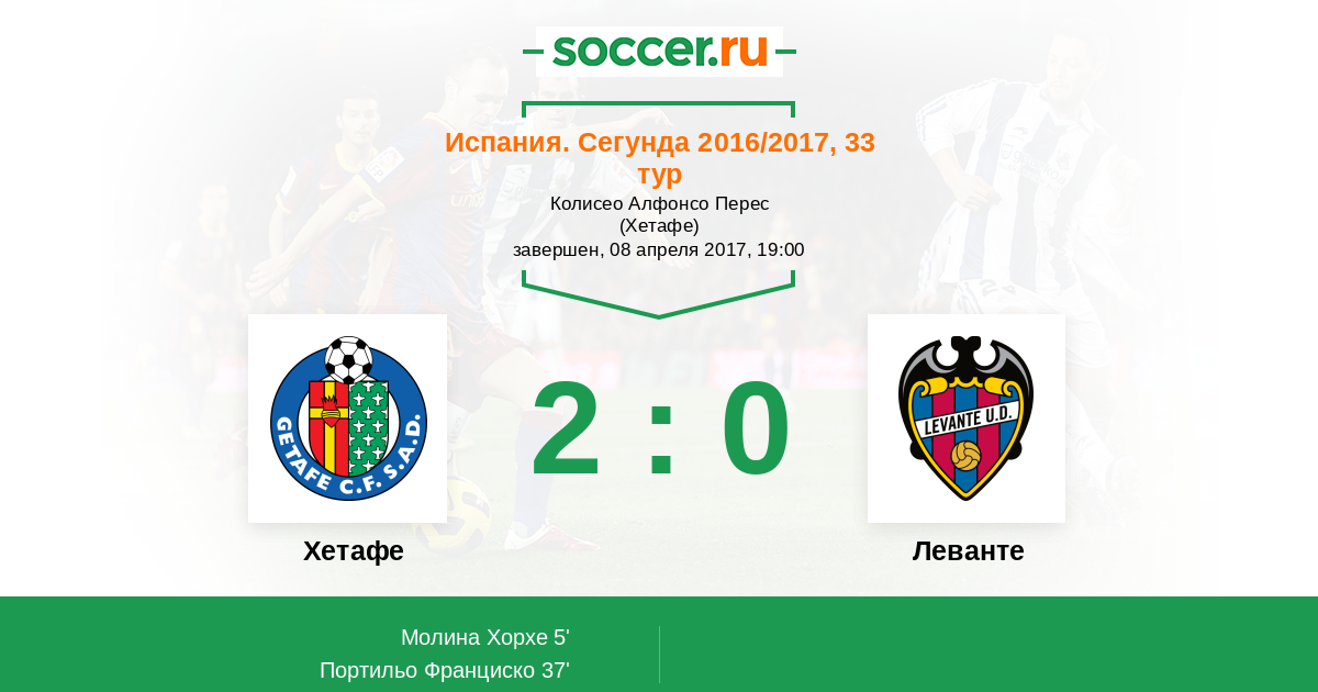 Протокол матча Хетафе против Леванте