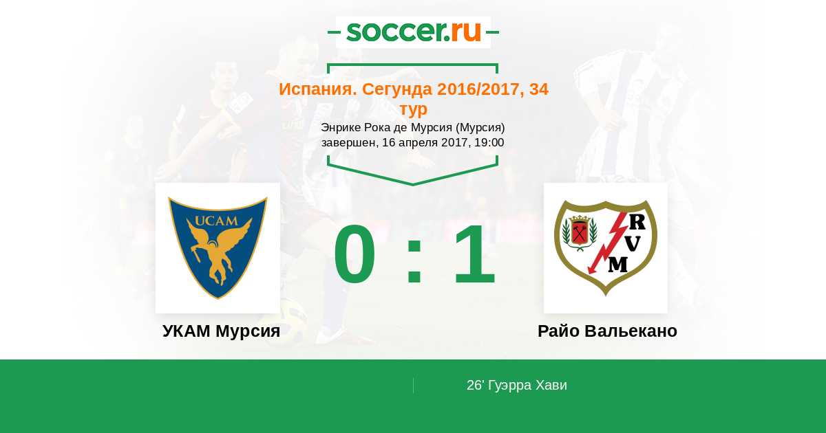 Протокол матча УКАМ Мурсия против Райо Вальекано