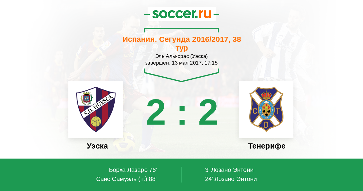 Протокол матча Уэска против Тенерифе