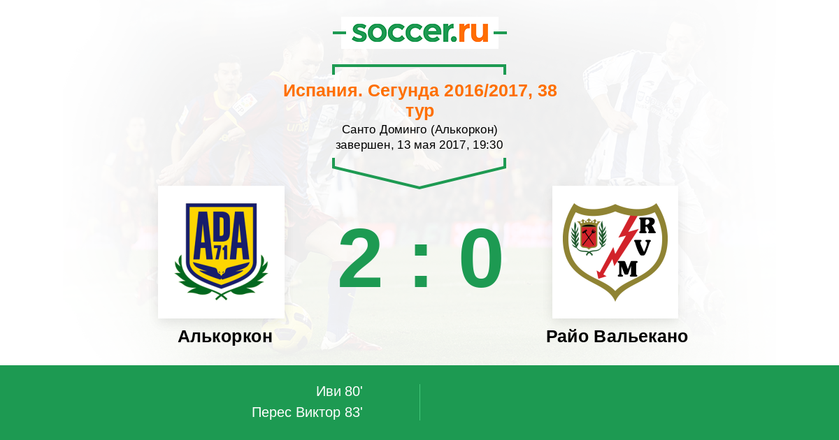 Протокол матча Алькоркон против Райо Вальекано
