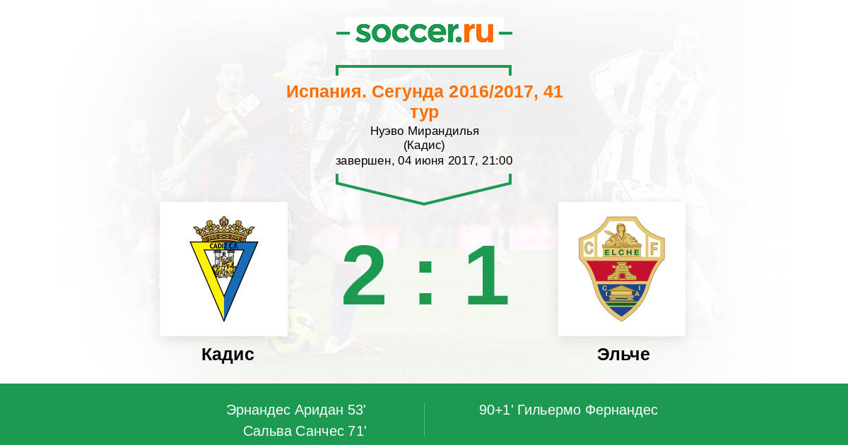 Протокол матча Кадис против Эльче