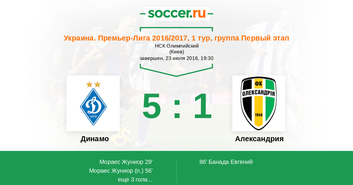 Протокол матча Динамо против Александрия