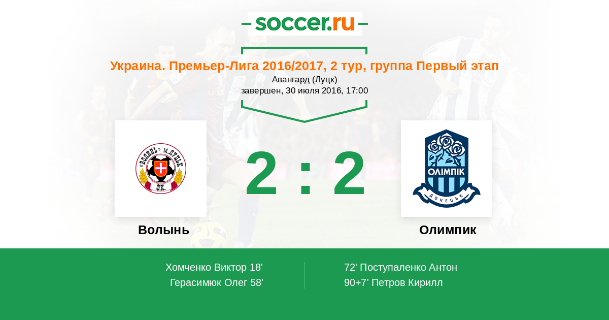 Протокол матча Волынь против Олимпик