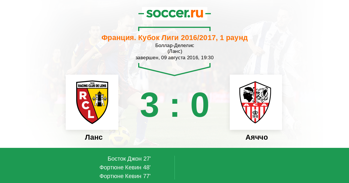 Протокол матча Ланс против Аяччо