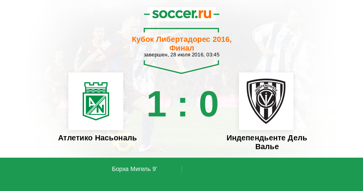 Протокол матча Атлетико Насьональ против Индепендьенте Дель Валье