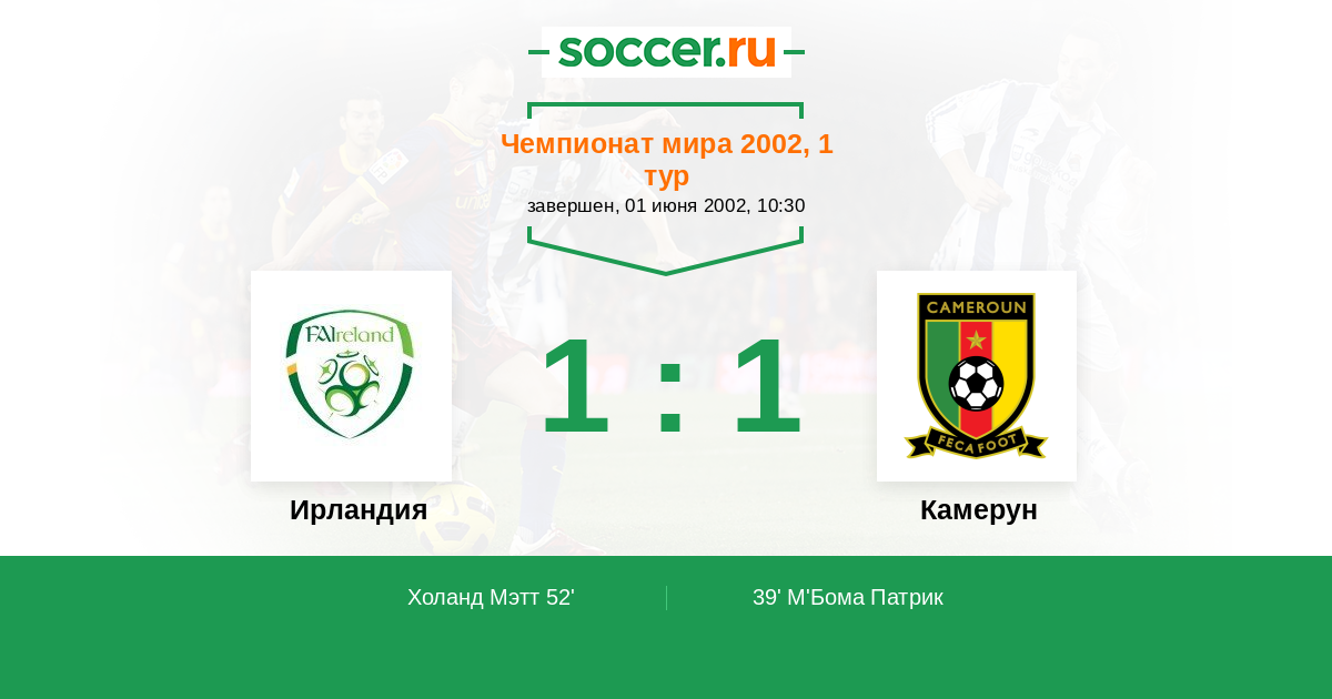 39' (0:1) М'Бома Патрик (10) (Это'О Самуэль (9))