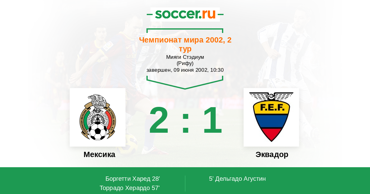 Протокол матча Мексика против Эквадор