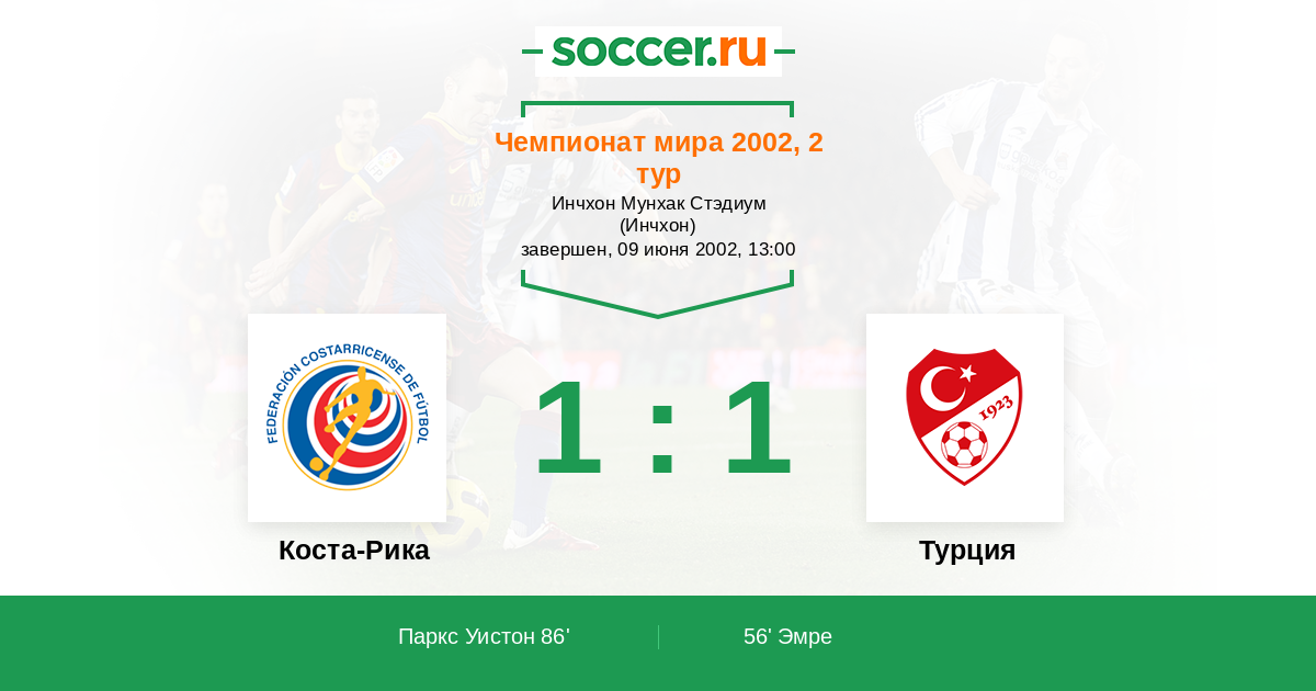 Протокол матча Коста-Рика против Турция