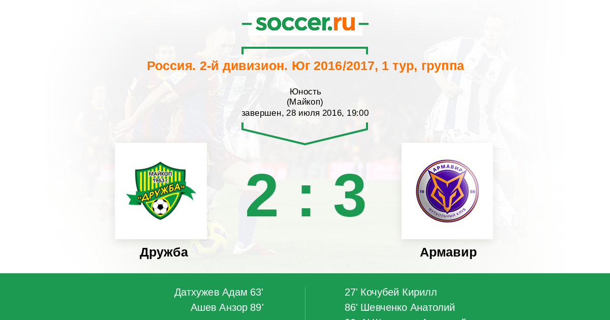 Протокол матча Дружба против Армавир