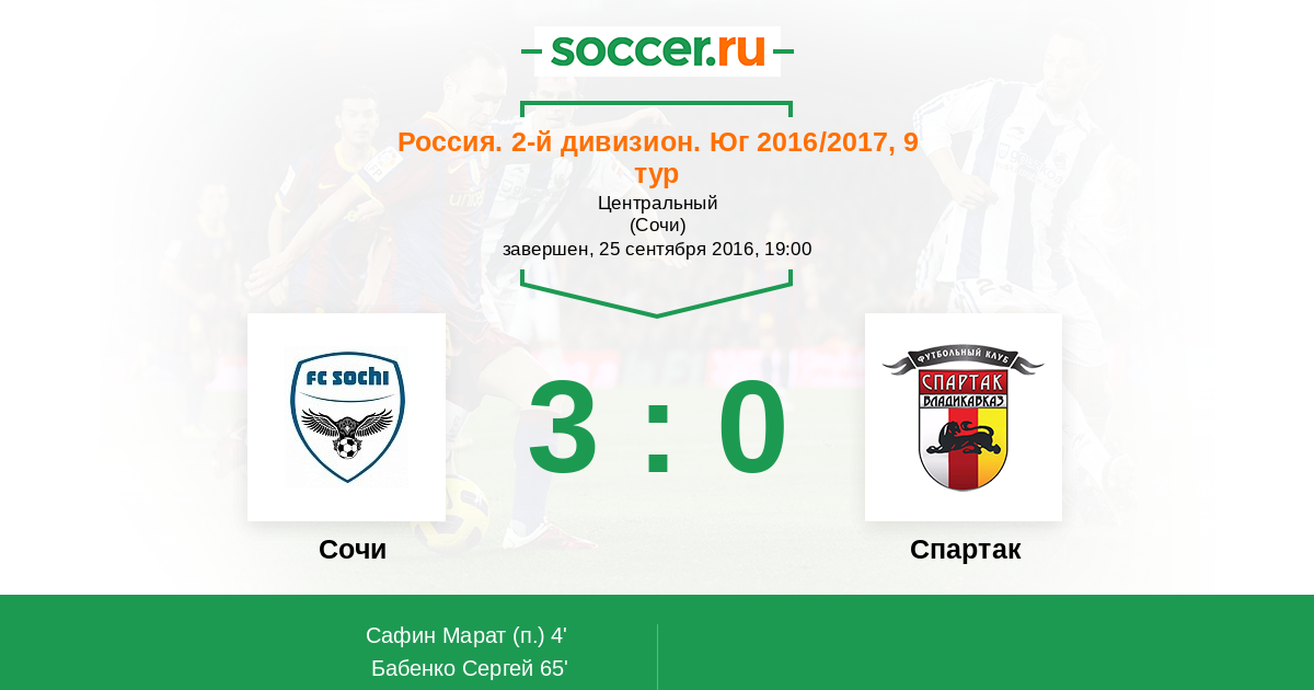 Протокол матча Сочи против Спартак