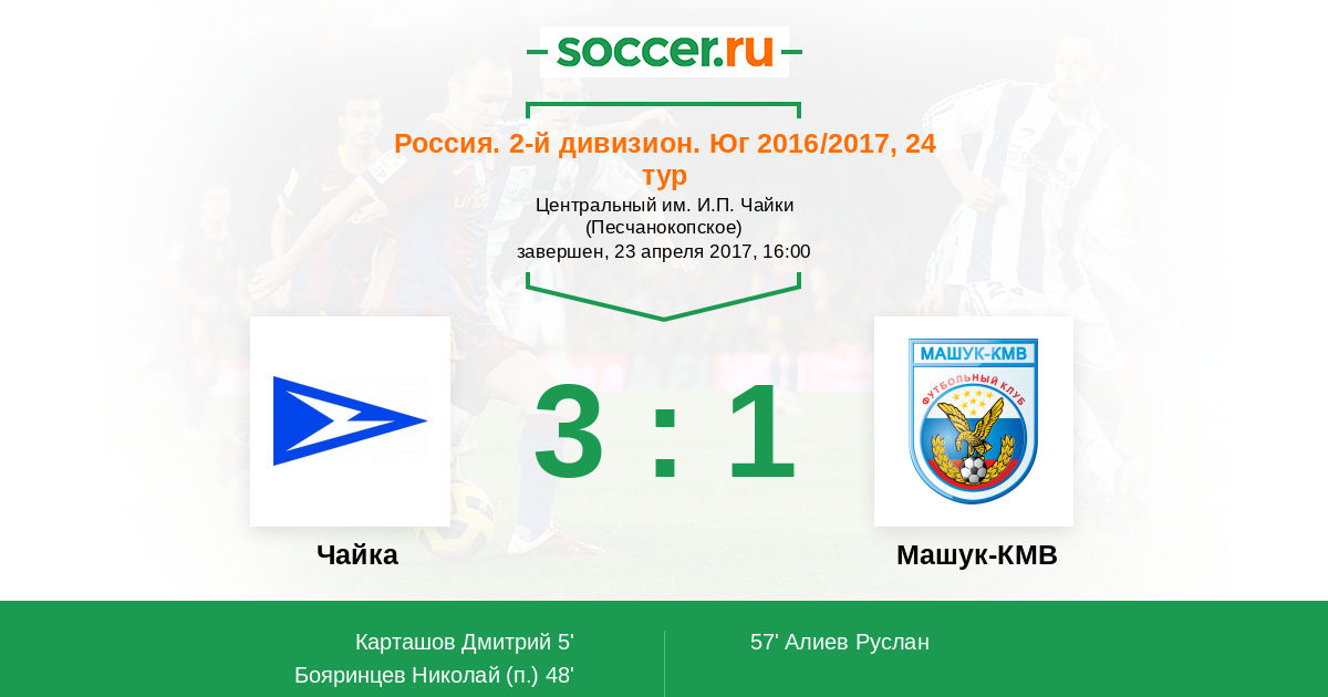 Протокол матча Чайка против Машук-КМВ