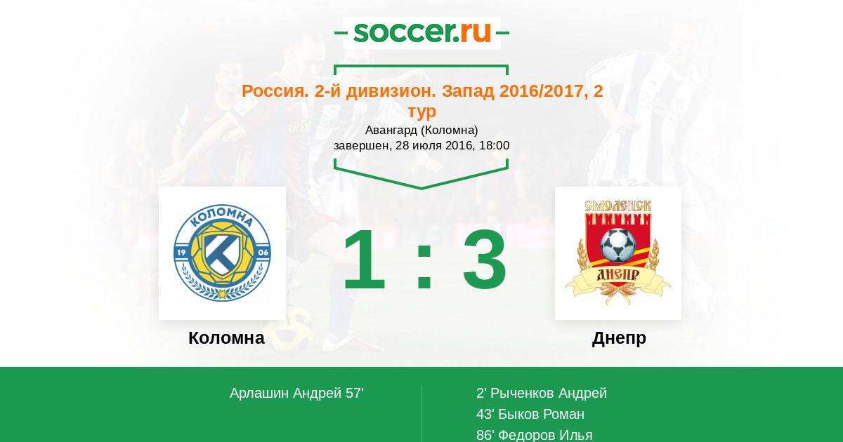 Протокол матча Коломна против ЦРФСО Смоленск