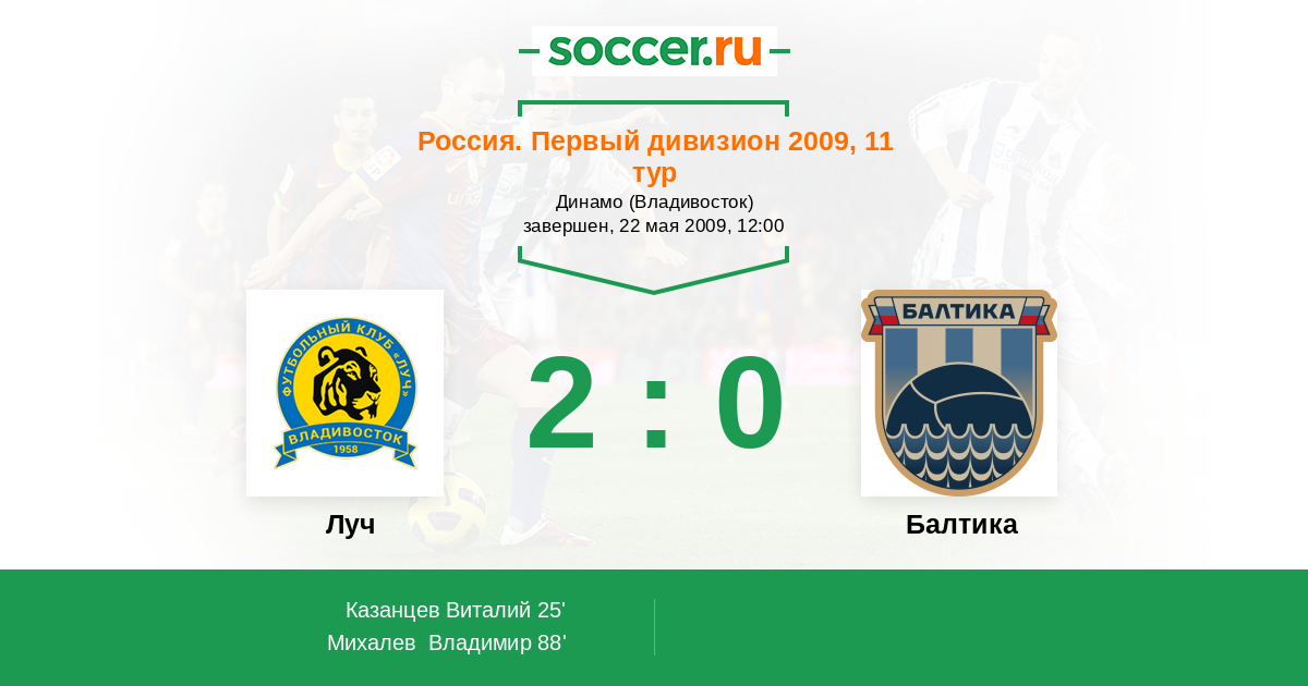 Протокол матча Луч против Балтика