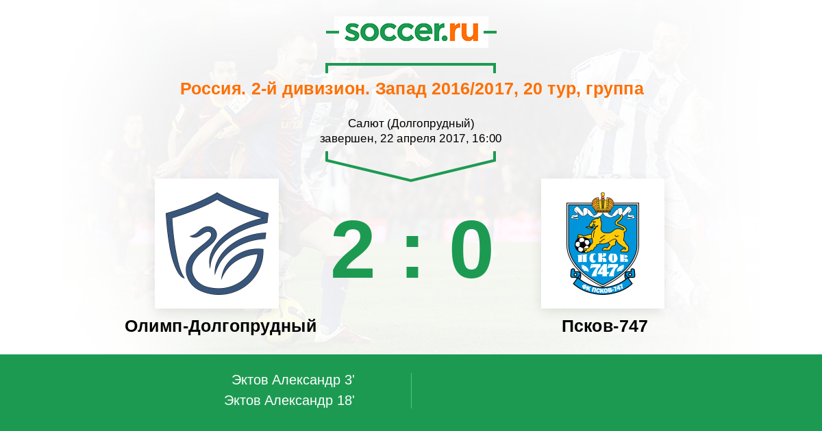 Россия. 2-й дивизион. Запад 2016/2017, 20 тур