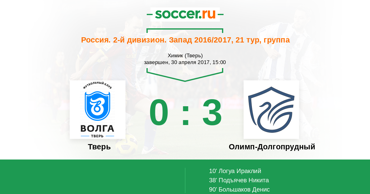 Россия. 2-й дивизион. Запад 2016/2017, 21 тур