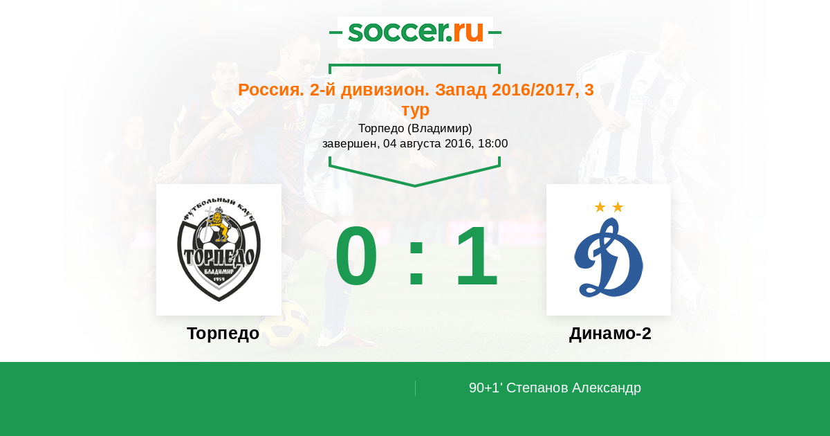 Протокол матча Торпедо против Динамо-2