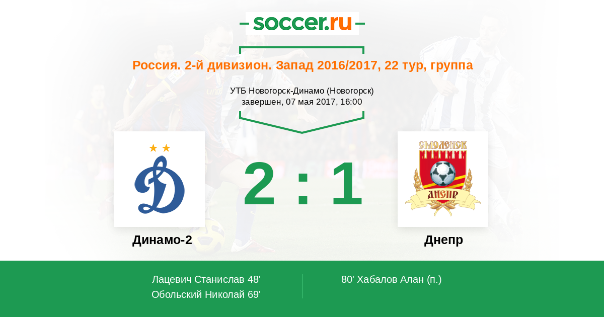 Протокол матча Динамо-2 против ЦРФСО Смоленск
