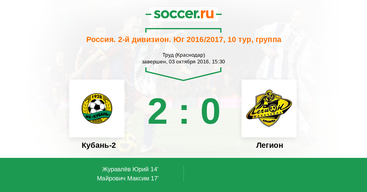 Протокол матча Кубань-2 против Легион