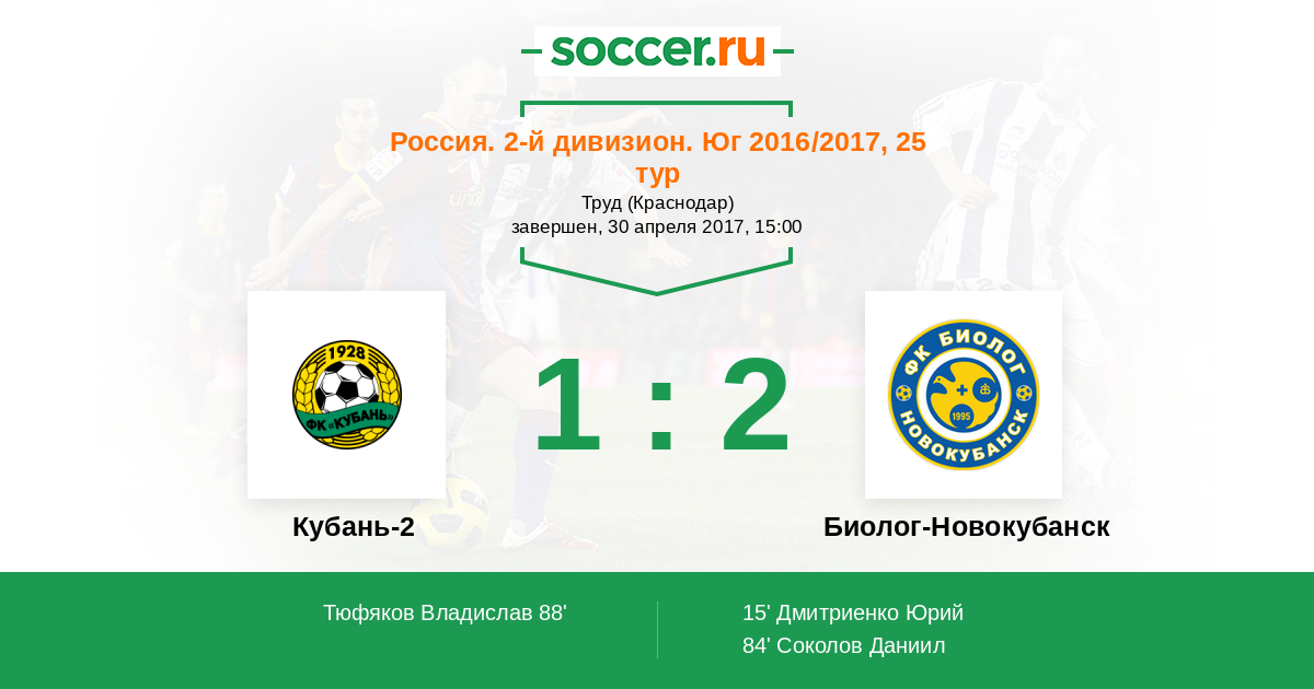 Протокол матча Кубань-2 против Биолог-Новокубанск