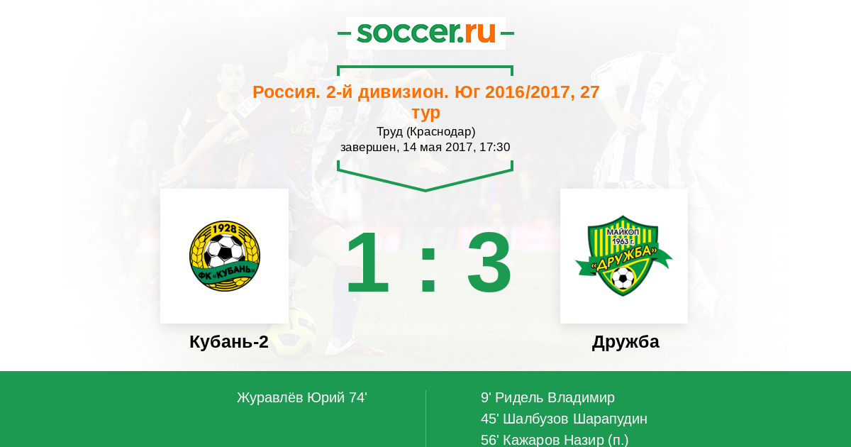 Протокол матча Кубань-2 против Дружба