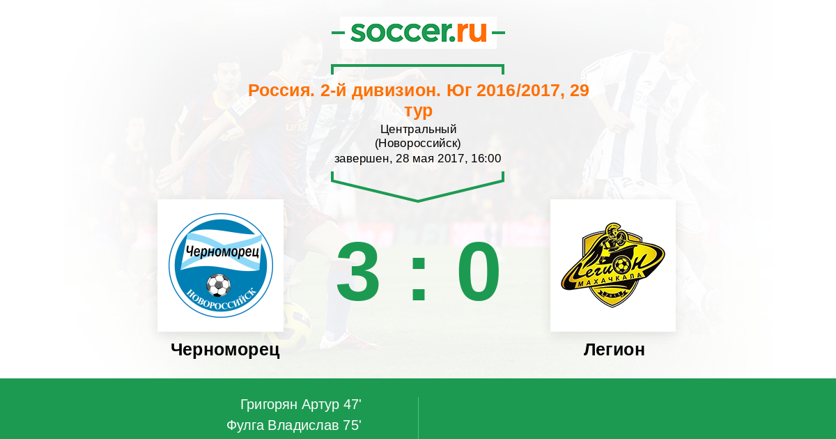 Протокол матча Черноморец против Легион